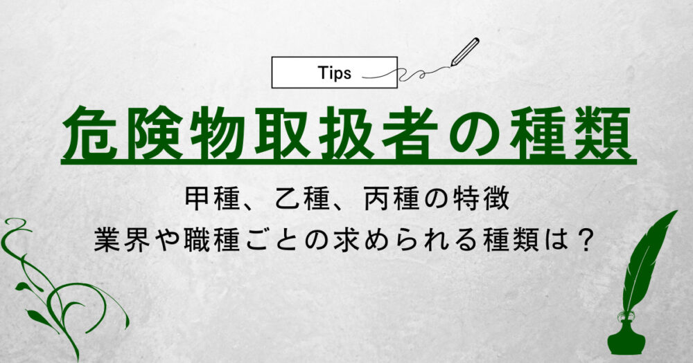 危険物取扱者には甲種、乙種、丙種の3つの種類があり、それぞれの種類によって取り扱える危険物の種類が異なるため自分にとって必要な資格を選ぶことが大切です。